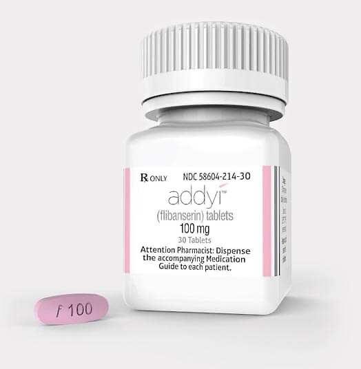 Addyi (flibanserin tabletten van 100mg). Bron: www.addyi.com